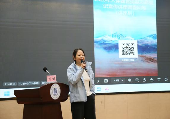 证书颁发后,浙江省第37例造血干细胞捐献者倪滨、浙江省人体器官捐献管理中心工作人员何炯先后进行了生命教育相关的分享。他们结合自身经历与工作实践,讲述了生命捐献背后的感动故事,传递“生命延续”的深刻内涵,为在场师生上了一堂生动的生命教育课。