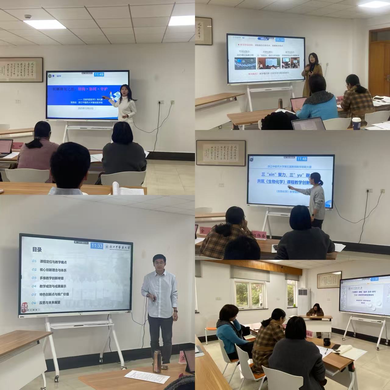 成绩的背后,更凝聚着学院领导与教研室的集体智慧与鼎力支持。作为教师成长的“孵化器”,学院杏坛花开名师创新工作室始终将教学创新能力提升作为核心工作,赛前邀请校内外专家团队指导点拨邀请学院教学经验丰富的资深教授进行学术专业指导导师邀请参赛经验丰富的老师担任竞赛技术指导开展了多轮次跨学科磨课交流,为参赛教师提供全流程支持。参赛团队所在的教研室充分发挥团队协作优势,组织教师开展“头脑风暴”,从教学目标设定、教学内容重构到教学评价设计,逐环节推敲细节、打磨亮点。备赛期间组织集中磨课7场,帮助教师精准把握大赛评审标准,有效提升教学设计的创新性与实践性。这种“个人钻研+团队赋能”的培养模式,不仅为教师搭建了快速成长的平台,更形成了“以赛促教、以赛促改”的良好教学氛围。